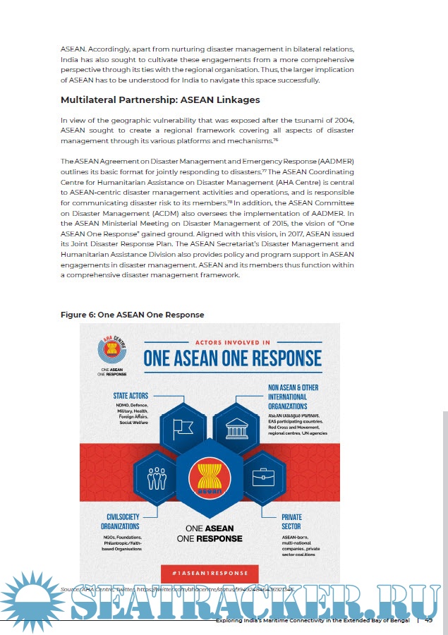 Description: This report makes an appraisal of the geopolitical, geostrategic and geoeconomic dimensions of the linkages between India’s east coast and the ‘extended Bay’—Thailand, Malaysia, Singapore and Indonesia—with respect to port logistics, trade interactions, disaster management and strategic convergences. The aim of this study is three-fold: a) to examine the existing nature of port and commercial linkages between India and the aforesaid littorals and explore how these linkages can be strengthened; b) to examine the vulnerabilities of the littorals in terms of natural calamities and to analyse how and to what extent humanitarian assistance and disaster management can be regionally governed; and c) to explore the Bay of Bengal as a maritime space to understand the geostrategic construct of Indo-Pacific.