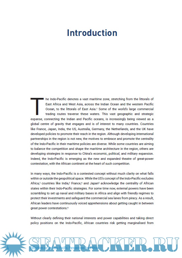 Year: 2021 Language: english Author: Abhishek Mishra Genre: Research papers Publisher: Observer Research Foundation ISBN: 978-93-90494-89-7 Format: PDF Quality: eBook Pages count: 60 Description: The Indo-Pacific denotes a vast maritime zone, stretching from the littorals of East Africa and West Asia, across the Indian Ocean and the western Pacific Ocean, to the littorals of East Asia.[1] Some of the world’s large commercial trading routes traverse these waters. This vast geographic and strategic expanse, connecting the Indian and Pacific oceans, is increasingly being viewed as a global centre of gravity that engages and is of interest to many countries. Countries like France, Japan, India, the US, Australia, Germany, the Netherlands, and the UK have developed policies to promote their reach in the region. Although developing international partnerships in the region is not new, the motives to embrace and promote the centrality of the Indo-Pacific in their maritime policies are diverse. While some countries are aiming to balance the competition and shape the maritime architecture in the region, others are developing strategies in response to China’s economic, political, and military expansion. Indeed, the Indo-Pacific is emerging as the new and expanded theatre of great-power contestation, with the African continent at the heart of such competition.