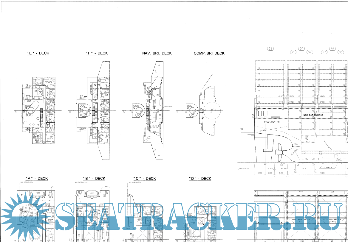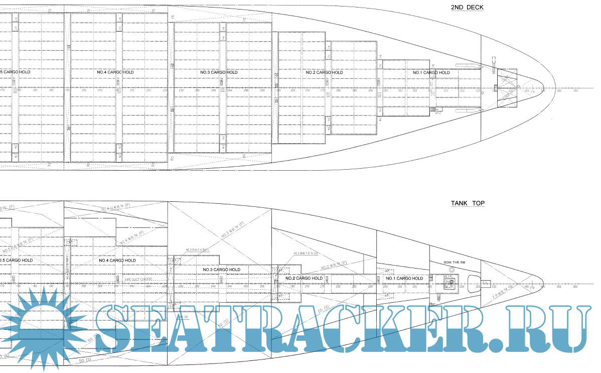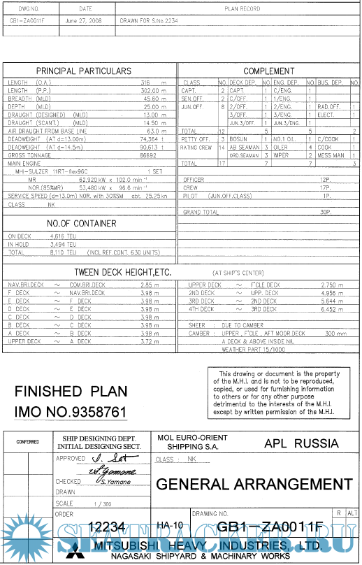 Description: General arrangement plan of very large container ship APL Russia (MOL Comfort) (C series of MOL), 8110 TEU.