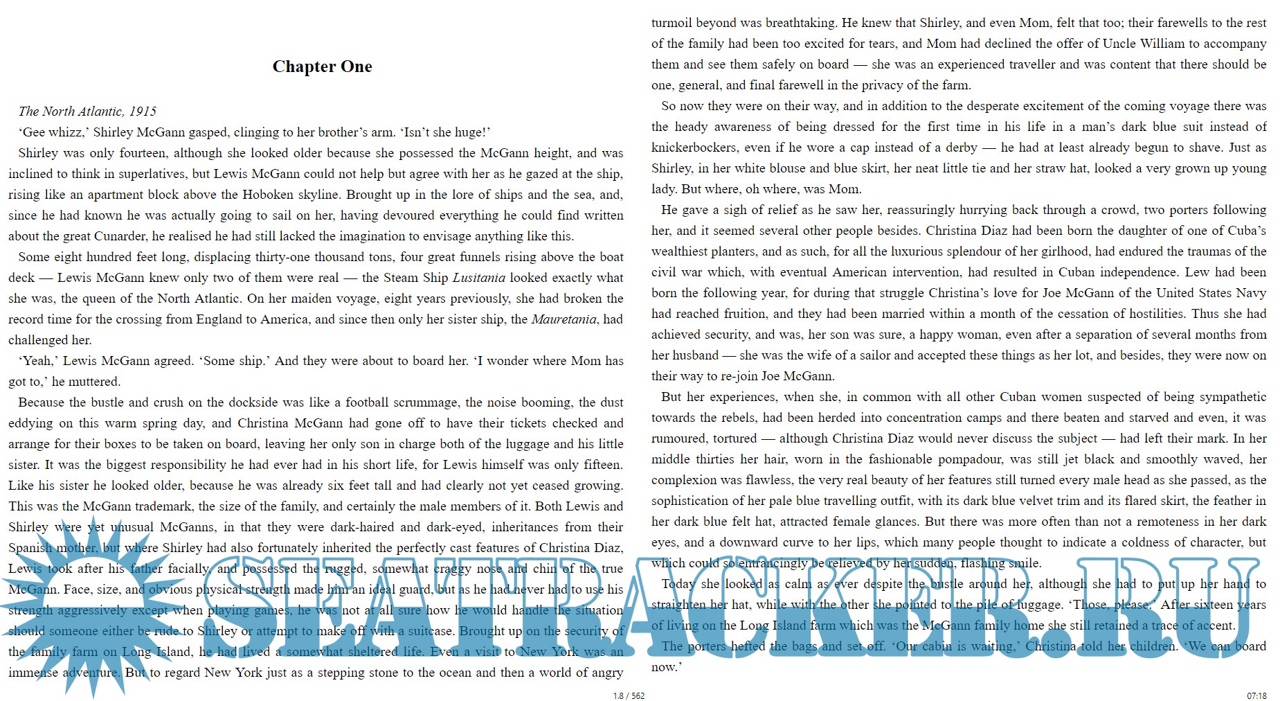Year: 2018 Language: english Author: Christopher Nicole Genre: Fiction Publisher: Lume Books Format: EPUB Quality: eBook Pages count: 562 Description: The North Atlantic, 1915. War has been raging in Europe and it looks to continue for many years to come. Lewis, son of Christina and Joe, known to his friends as ‘Lew’, grows from charming adolescent to brave seafarer. At times passionate, at others brave, Lewis is the dashing romantic lead in this tale, which takes in 25 years of his life and his relationship with Brenda Grant, his beloved, and his sister Shirley. He possesses all the McGann trademarks, including a love of the sea. Beginning in 1915 and spanning the tumultuous years of the Great War to the shattering onset of World War II, this is his story. It takes him from London to New York, from Shanghai to Pearl Harbour. Other more exotic characters appear in Lew’s life, like the loyal Hashimoto Kurita and Lieutenant Hallstrom, in a wonderful picaresque tale that forms a crucial part in the McGann saga. Will Lew survive these turbulent years? Or will raging seas and passionate romances prove too much for the young McGann? In the tradition of great romantic novels, readers of Austen and Bronte will enjoy the passion felt between characters. Fans of Sebastian Faulks’s Birdsong will appreciate the scenes set in a wartime environment, as Lew joins up with the British Navy and trains in the North Sea. Additional info:Christopher Robin Nicole (born 7 December 1930 in Georgetown, British Guiana) is a prolific British writer of over 200 novels and non-fiction books since 1957. He wrote as Christopher Nicole under several pseudonyms. Book 1: