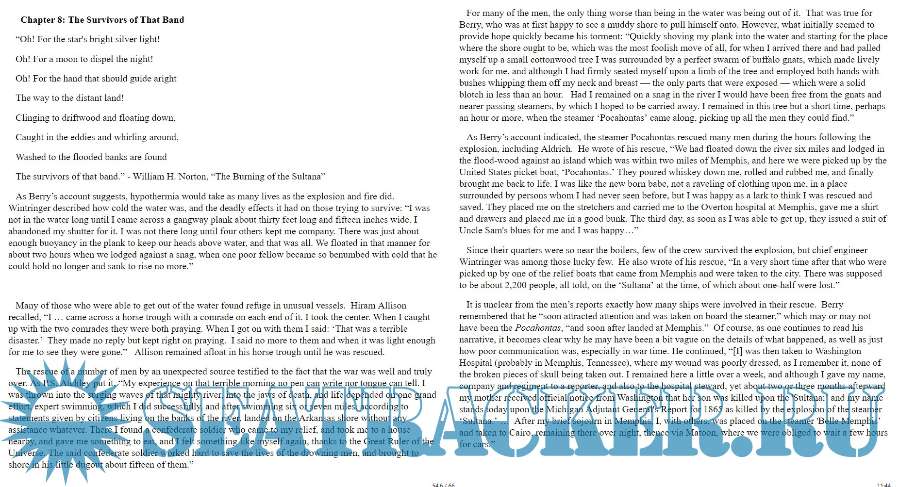 Perhaps the cruelest irony of the disaster is that the Sultana was packed full of men who had survived every conceivable trial and tribulation of the war, from wounds and sicknesses to being prisoners. Having lost hundreds of thousands, America was almost numb to the loss of a couple of thousand more, especially when many of the dead were soldiers themselves, and in a sense, it was left for future generations to try to unravel what went wrong and to pay tribute to the men who died on that dark night.