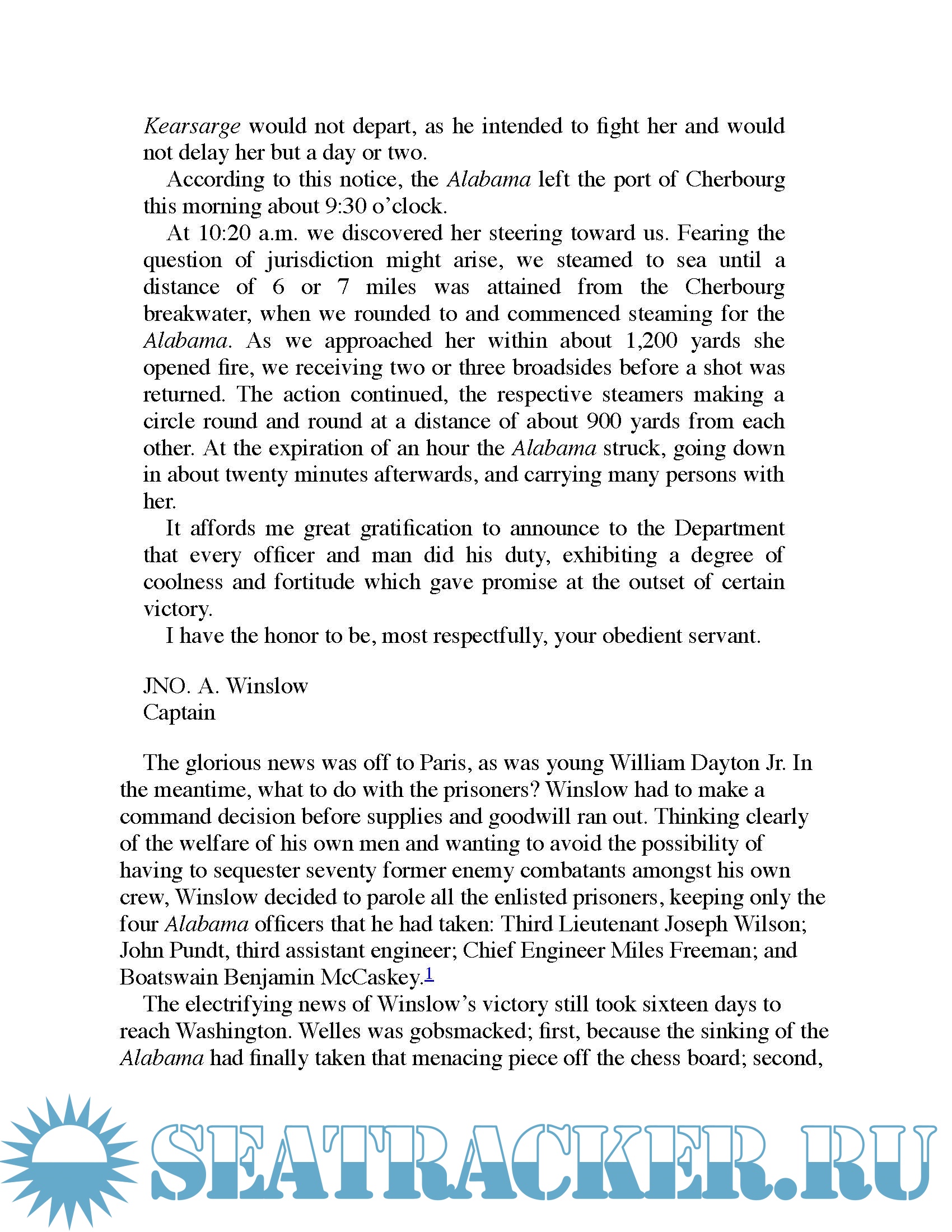 Winslow pursued Semmes in a spectacular fourteen-month chase over international waters, culminating in what would become the climactic seabattle of the Civil War.