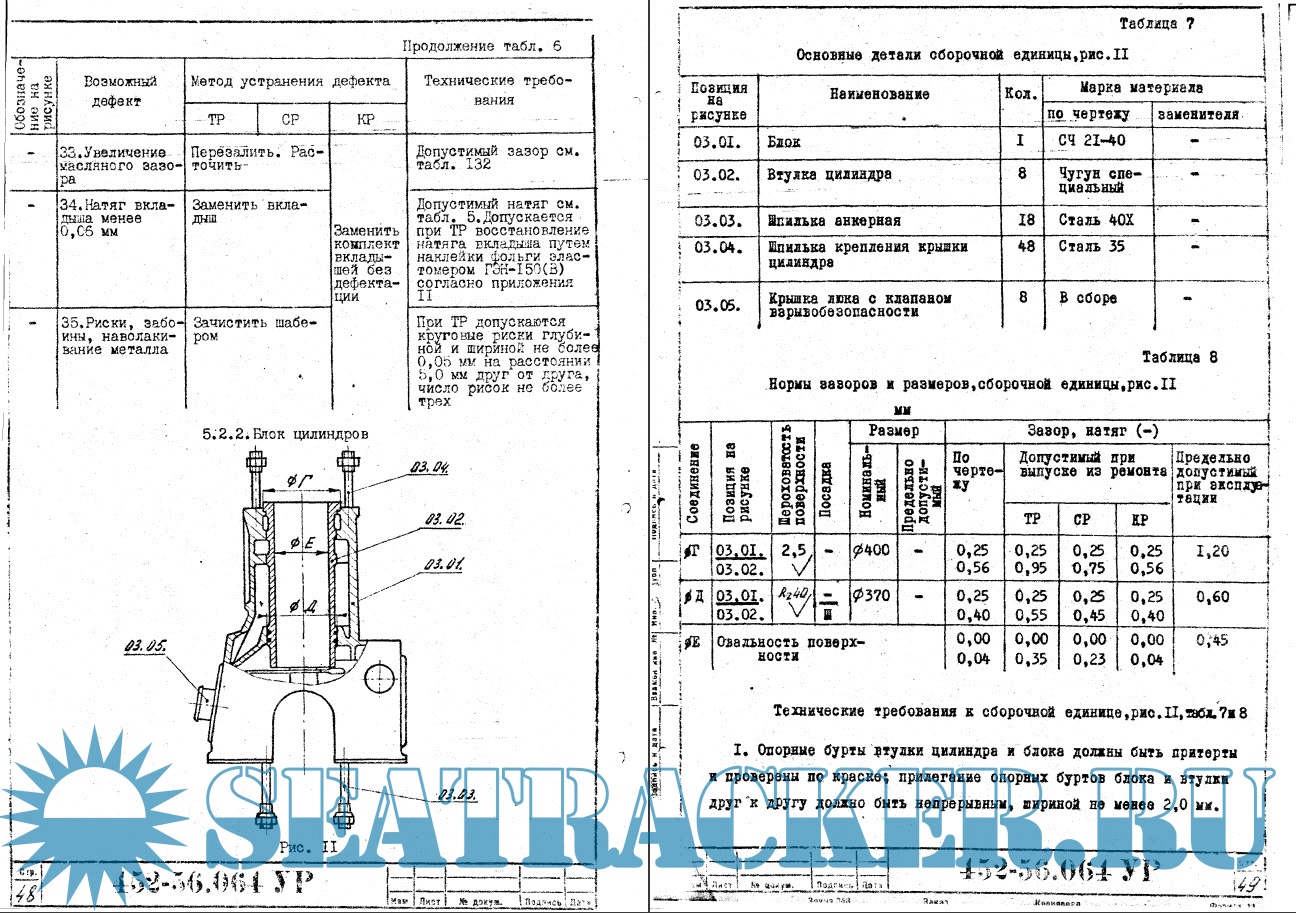 -технические требования на ремонт судового дизеля ИЫУИАЗМ "Тропик" 452-56.012, а также рекомендации, приведённые в специальной литературе.