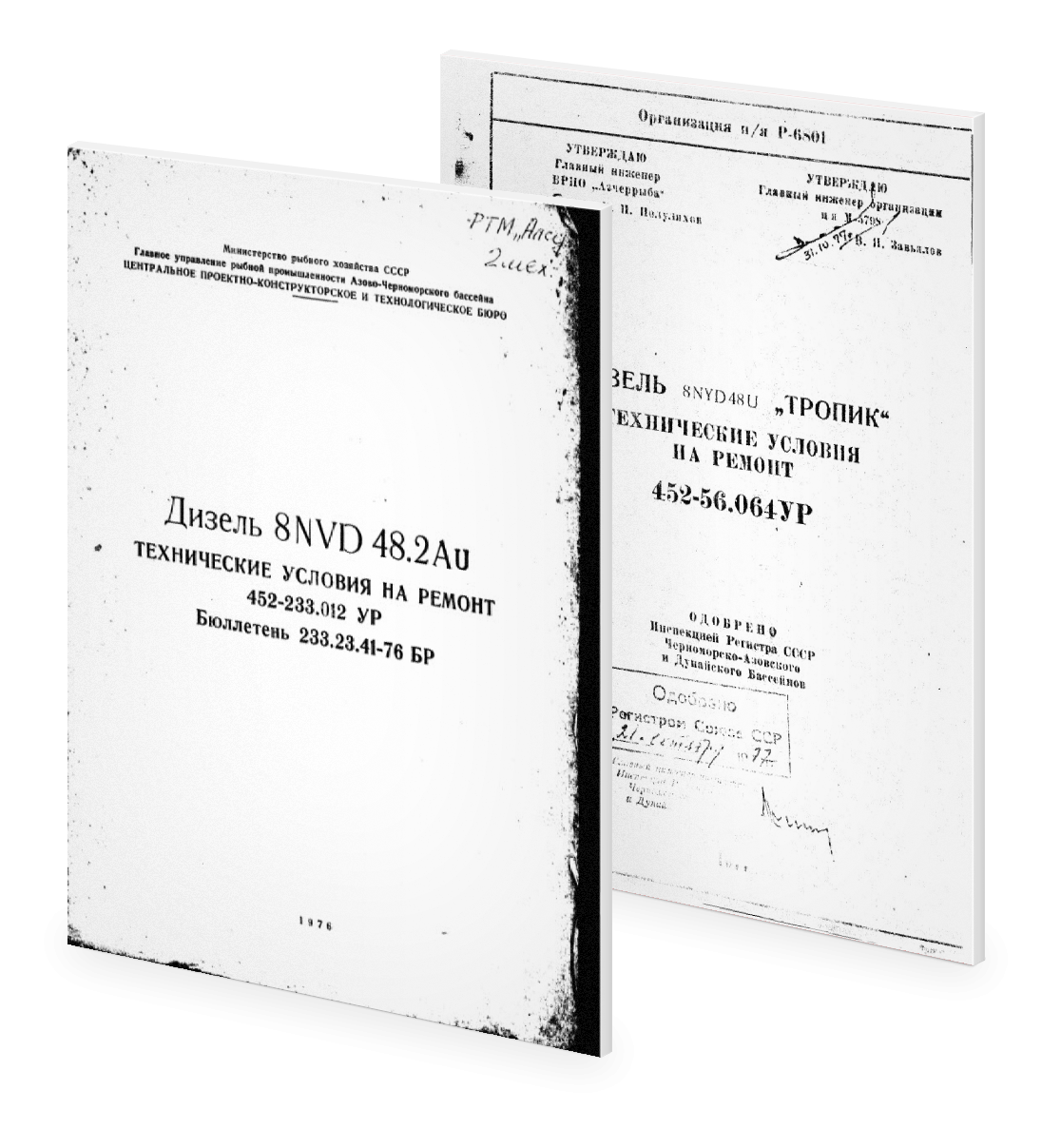 Настоящие технические условия выпущены взамен "Технических требований на ремонт судового дизеля 8NVD48U "Тропик” 452-56.012 и распространяются на ремонт главных судовых дизелей, установленных на рыболовных морозильных траулерах типа "Тропик", эксплуатируемых без заводского ремонта в течение двух лет. Ремонт дизеля производится под техническим надзором Регистра СССР.