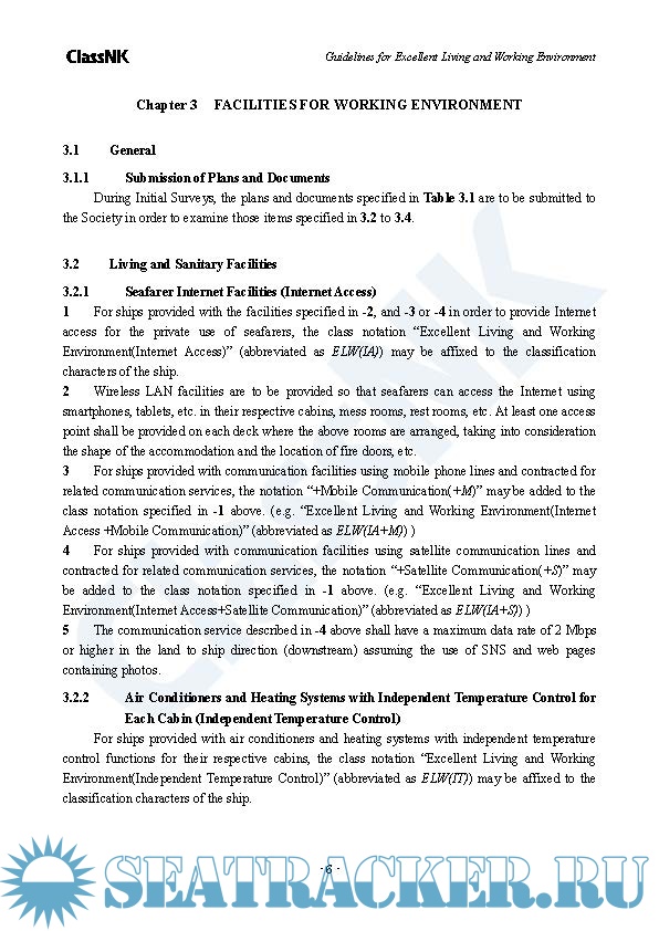 Year: 2022 Language: english Author: ClassNK Genre: Normative document Format: PDF Quality: eBook Pages count: 18 Description: This Guidelines will lead to further improvements in the living and working environments on board ships. This Guidelines for Excellent Living and Working Environment (hereinafter referred to as the “Guidelines”) so that the notation “Excellent Living and Working Environment” (abbreviated as ELW) can be affixed to the classification characters of the ships to identify those ships where efforts are being made to improve the living and working environments on board. In addition, as part of the “Innovation Endorsement” a certification service offered by ClassNK to support the spread and development of innovative technologies, this Guidelines also covers advanced initiatives utilising digital technologies and other means for certification.