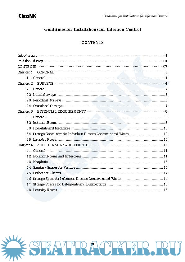 Year: 2022 Language: english Author: ClassNK Genre: Normative document Format: PDF Quality: eBook Pages count: 24 Description: For ships engaged in international voyages, the primary control measure adopted to date against the spread of infectious diseases has been quarantines. For all intents and purposes, however, quarantines do very little to prevent the transmission of infectious diseases among individuals on board a ship due to the nature of onboard accommodation environment that makes it extremely difficult to control their spread. This Guidelines for Installations for Infection Control (hereinafter referred to as the “Guidelines”) applies to ships (excluding passenger ships) registered with the Nippon Kaiji Kyokai (hereinafter referred to as “the Society”) that have implemented means to minimise the spread of infection diseases on board ship (hereinafter referred to as “infection control measures”) and for which applications for the affixation of special class notation to classification characters are submitted. The infection control measures specified in this Guidelines primarily apply to the installations, systems, equipment, and other means adopted by ships. This Guidelines also applies to the provision and use of medicines as well as medical devices and equipment not specifically referenced within, but such matters are also to be considered separately.