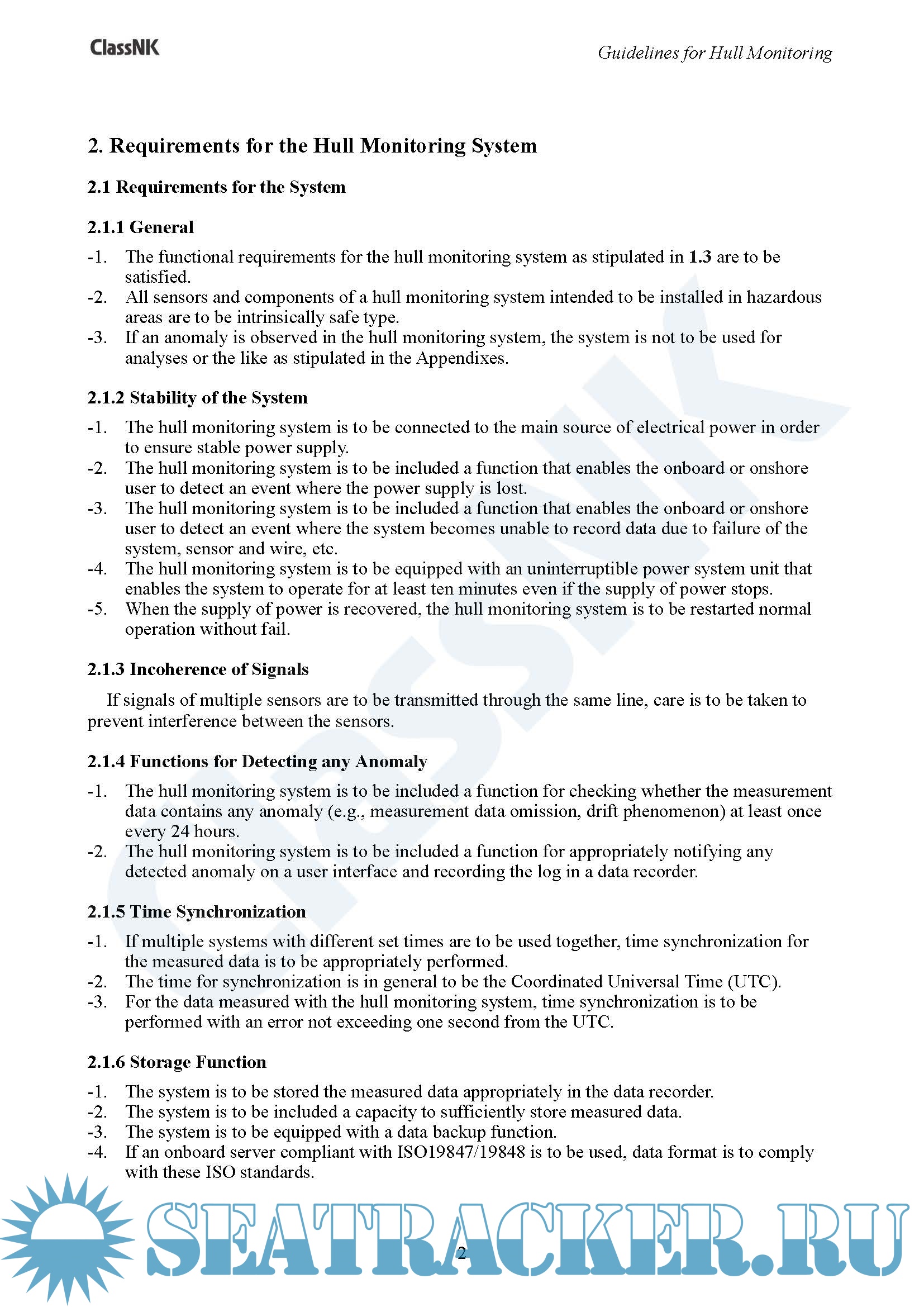 The hull monitoring system stipulated in the Guidelines is intended for onboard users such as