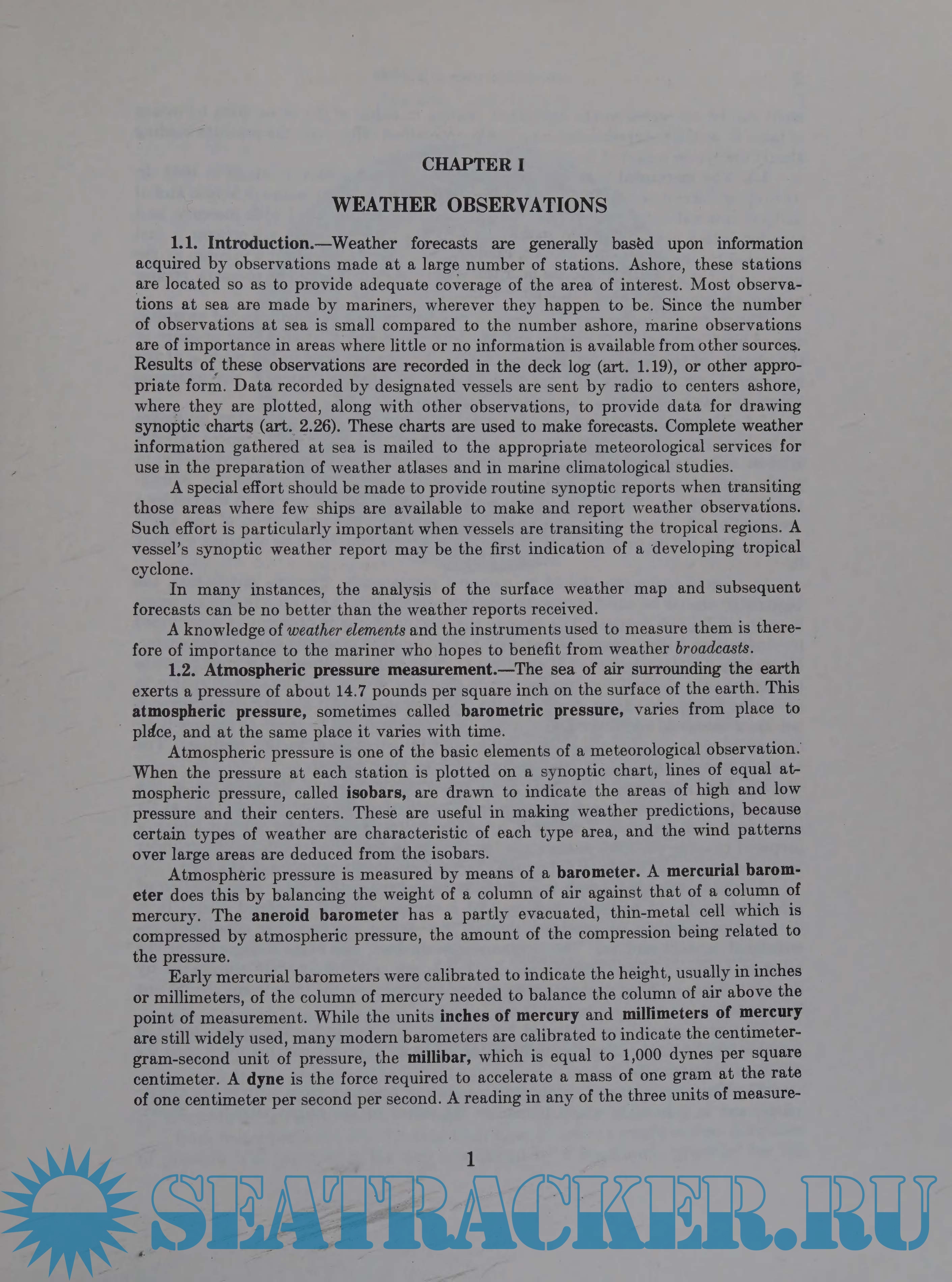 The material reprinted in this book is taken from the latest edition, 1977, AMERICAN PRACTICAL NAVIGATOR: AN EPITOME OF NAVIGATION (U.S. Defense Mapping Agency Hydrographic Center, Washington, D.C., 20390); "Bowditch," as it is called, has been a primary resource for yachtsmen since its first publication in 1802 by the U.S. Navy. Because of its voluminousness many boat owners are reluctant to keep it aboard for lack of space. MARINE WEATHER is designed to be taken aboard, includes essential information about weather, and can provide interesting reading on rainy days.