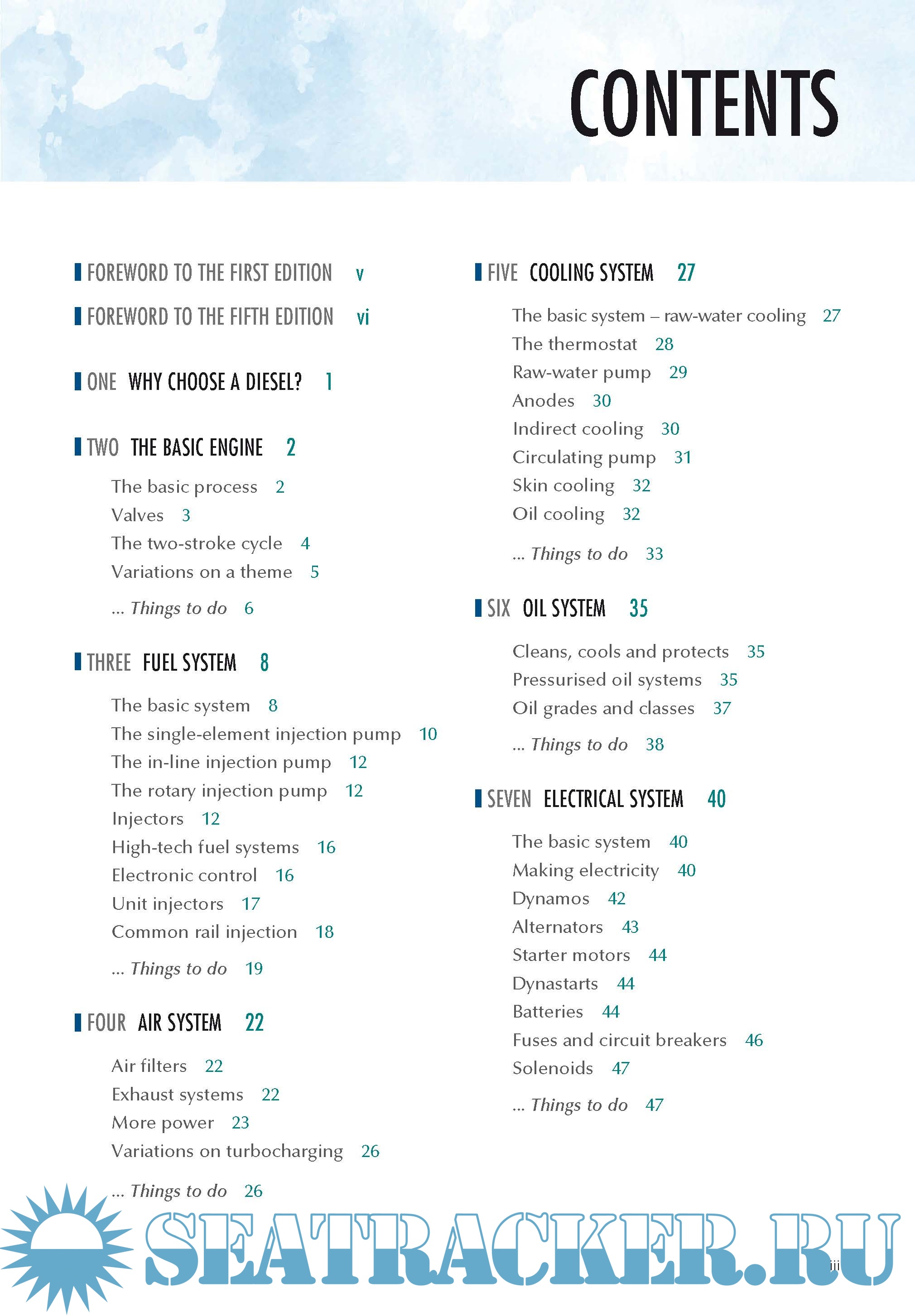 Year: 2018 Language: english Author: Mel Bartlett Genre: Handbook Publisher: Adlard Coles Edition: 5th ISBN: 9781472955425 Format: PDF Quality: eBook Pages count: 98 Description: The Adlard Coles Book of Diesel Engines is aimed at boatowners rather than experienced mechanics. In clear, jargon-free English, it explains how a diesel engine works, and how to care for it. Melanie Bartlett explains how the engine uses simple processes to covert fuel to power, and then looks at the various sub-systems that allow those processes to take place. She also advises on tools, winterizing and provides hints, tips and helpful fault-finding tables. Systems covered include: fuel, air, cooling, oil, electrical, propeller and transmission and control. This fifth edition has been thoroughly updated and illustrated with new full-color photos and diagrams. In particular, the Common Rail Injection System is covered, which governs how the fuel system is constructed, combined with the use of electronics (as opposed to mechanics) to control it thereby meeting the need for cleaner, greener engines to meet emissions regulations. : 4th Edition: https://seatracker.info/viewtopic.php?t=30194