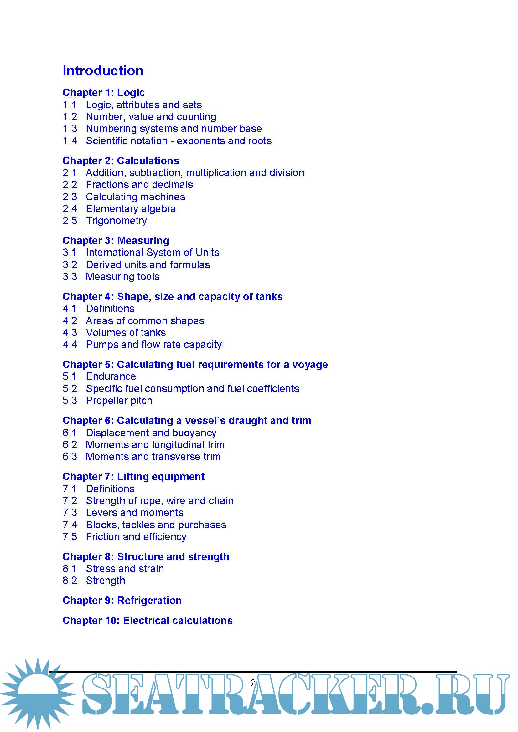 This is a reference for formulas and methods required to solve mathematical problems common in the mariner’s workplace. Although each section begins with basics, it is not intended to be read from start to finish. However, thumbing back to an earlier chapter will often be helpful in refreshing some underpinning concepts.