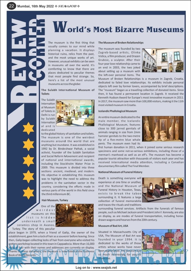 Description: The Sea and Job magazine launched in May 2007, was the second venture of Sea Line Group succeeding 'seajob.net' bringing the much renowned essence to the Group, the Sea and Job Magazine quickly gained popularity, becoming the No. 1 Shipping Magazine that came to be widely circulated all over India. Sea and Job over the years has evolved as the most trusted, ethical, objective and read maritime publication that possesses a large database of subscribers from various verticals in the industry.The magazine provides informative and interesting articles covering not just the shipping world but also the world outside it.Sea and Job is also a medium for the shipping/ manning companies to advertise marine jobs and also to promote their organization by publicizing internal activities like seminars, sports events and parties.Some notable endeavors of the magazine include the Know Your Recruiter Column, the Sailing Episodes Column and the Marine Insights section. The consistent efforts and the dedication to provide extraordinary services to the industry has resulted in the magnifying popularity and patronage of Sea and Job.