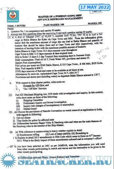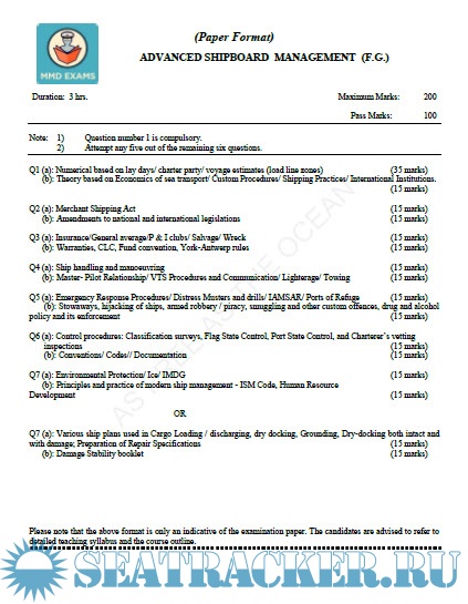 Question Paper Set for Advanced Ship Management (ASM) Mercantile Marine Department (MMD), India Examinations