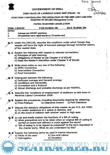 Question Paper Set for Phase I (Chief Mate F.G.) Mercantile Marine Department (MMD), India…