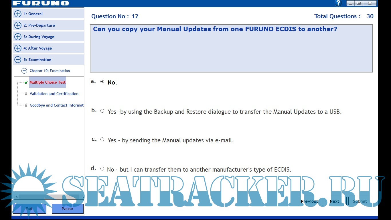 FURUNO FMD 2300 -Answers to to Exam.