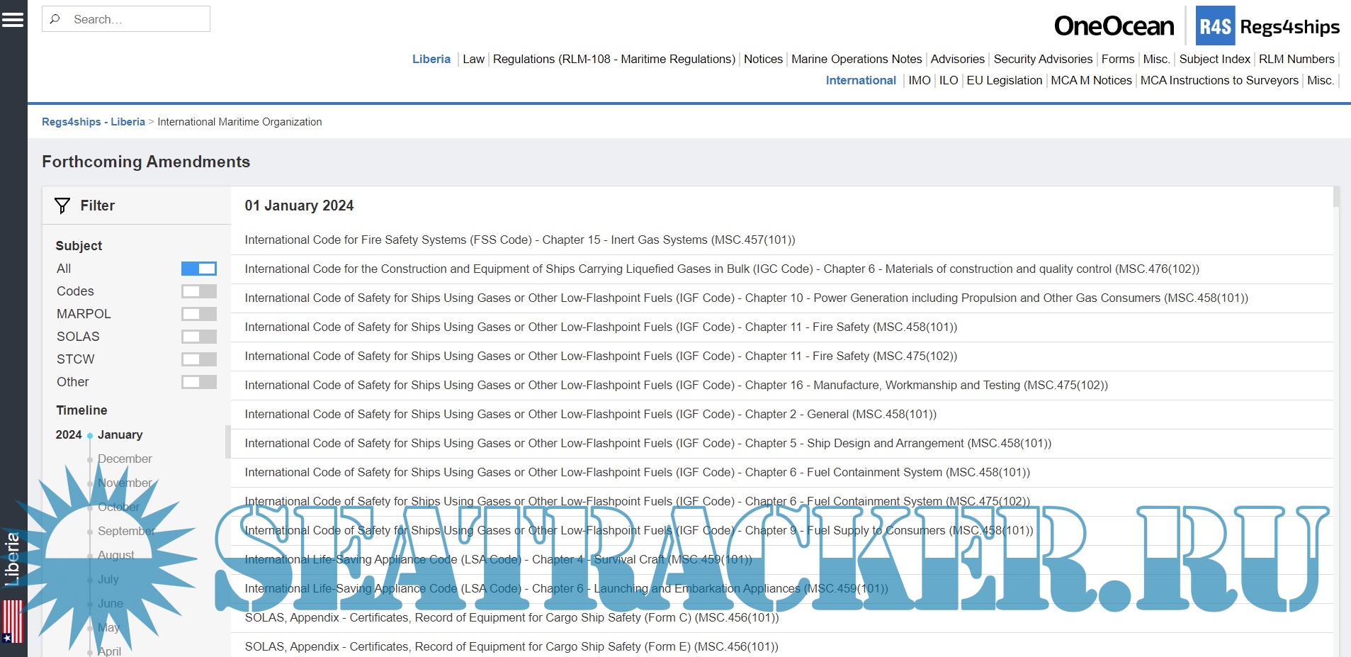 Year: 2021 Language: english Author: OneOcean Genre: Convention Format: EPUB Quality: eBook Number of pages: Multiple Description: Regs4ships is an updated, searchable, maritime regulation database that combines Flag State compliance documentation with IMO, ILO & EU legislation to provide an overall regulatory solution.
