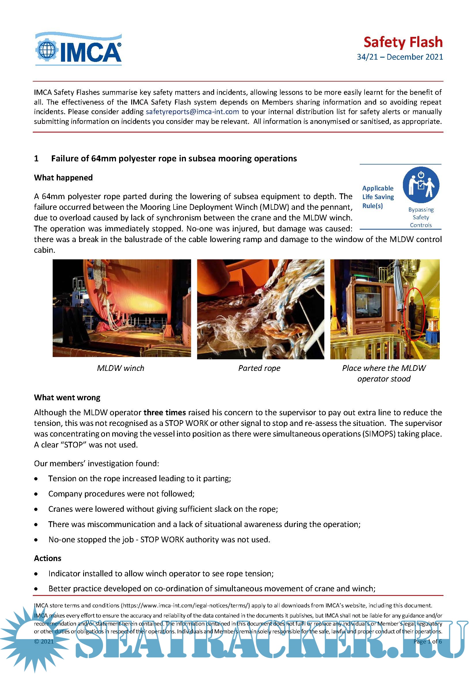 IMCA Safety Flashes issues 33-21Dec 2021 - 15-22 Jun 2022 The events or incidents came to IMCA's attention, or were reported to IMCA, between December 21 and June 2022.