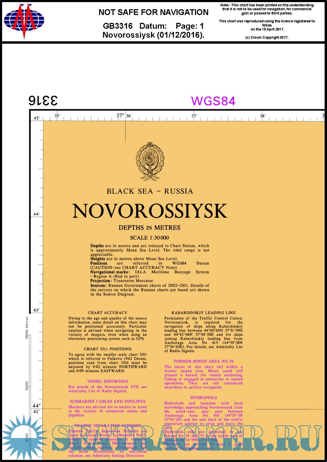 Description: British Admiralty Charts in pdf format, this chart has been printed on the understanding that it is not to be used for navigation. see "contents" for details.