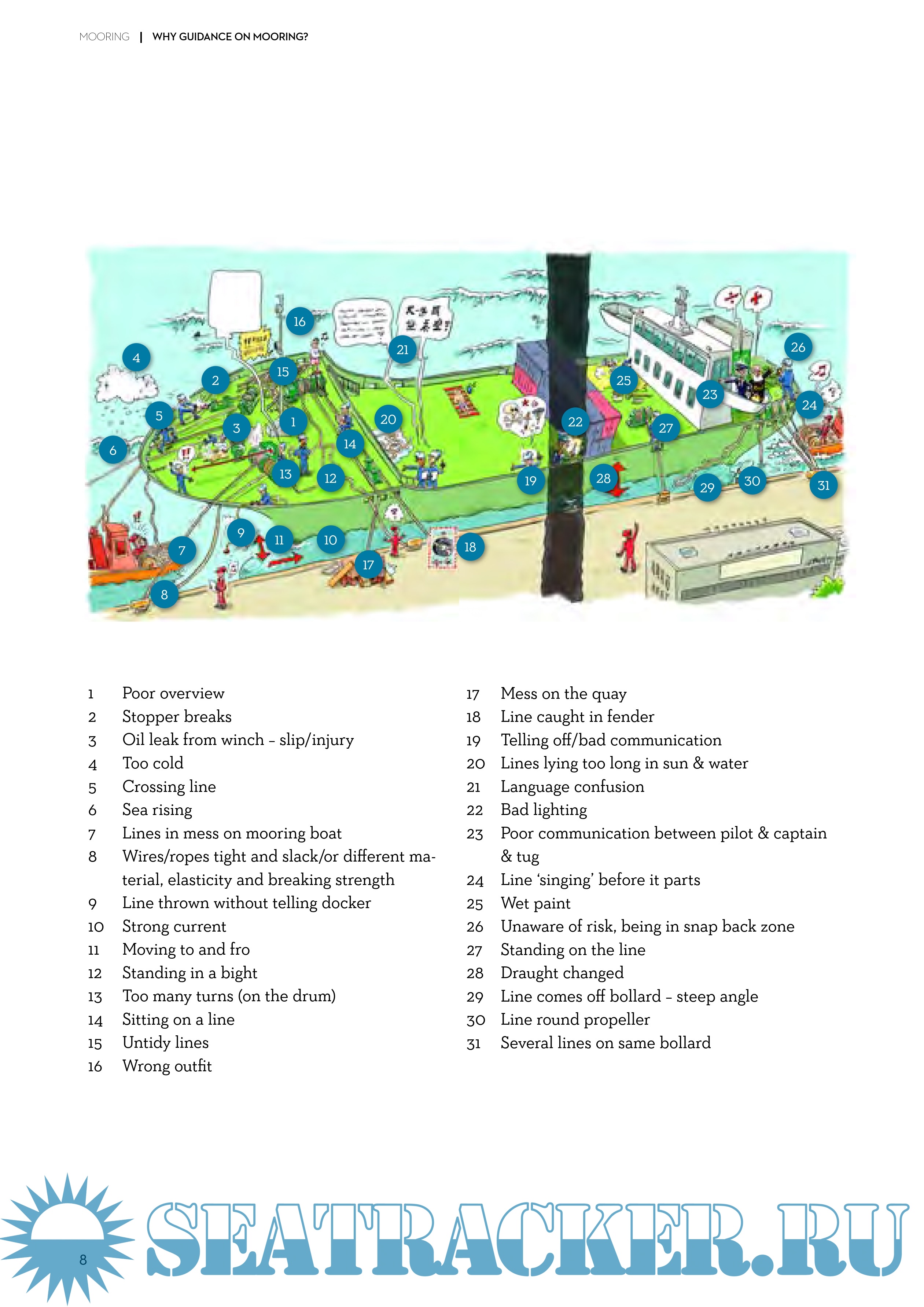 Description: Mooring, towing and hauling impose enormous strains on lines, warps, gear and equipment and major forces are involved. Therefore – take care and think carefully when mooring – especially on ships with structures that make it hard to oversee what is happening. Also on ships calling at different ports the specific mooring arrangements may differ considerably.