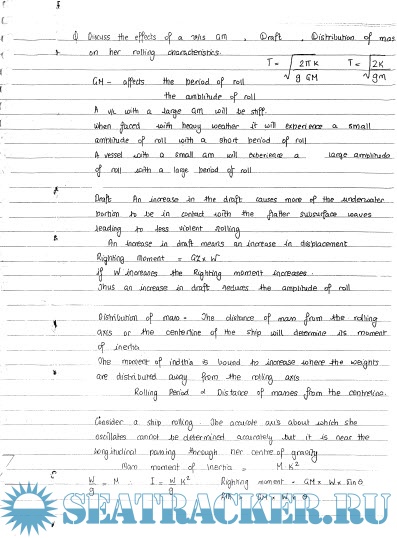 Naval Architecture Paper II: Theory Answers to Exam Questions of MMD India for Chief Mates F.G.…