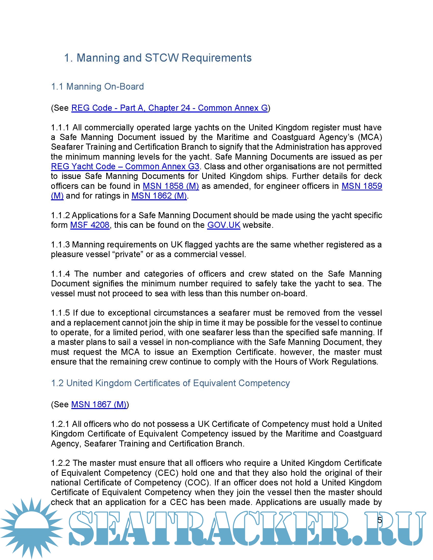 Description: This guide is for managers, masters and officers of United Kingdom registered large commercial yachts. The legal requirements, forms, etc. of other Registers including Red Ensign Group (REG) registers will vary from those of the UK. Check with your Flag state administration for specific rules for your vessel.