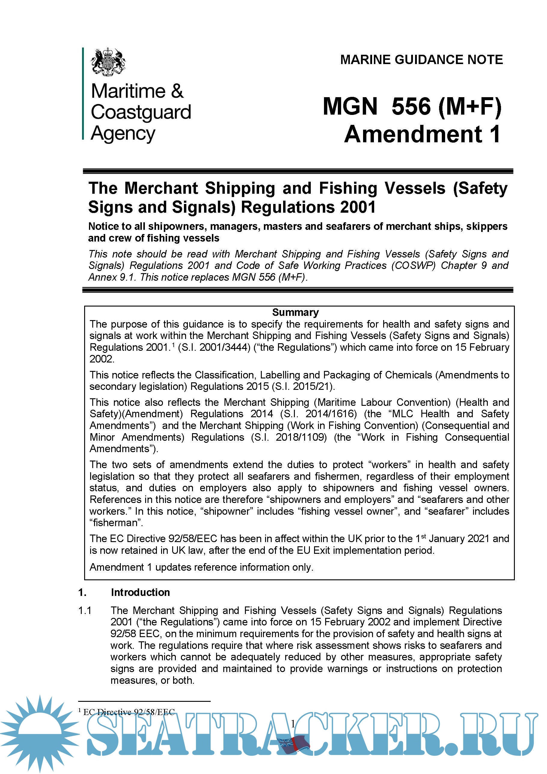 Safety Signs and Signals | MGN 556 (M+F) Amendment 1