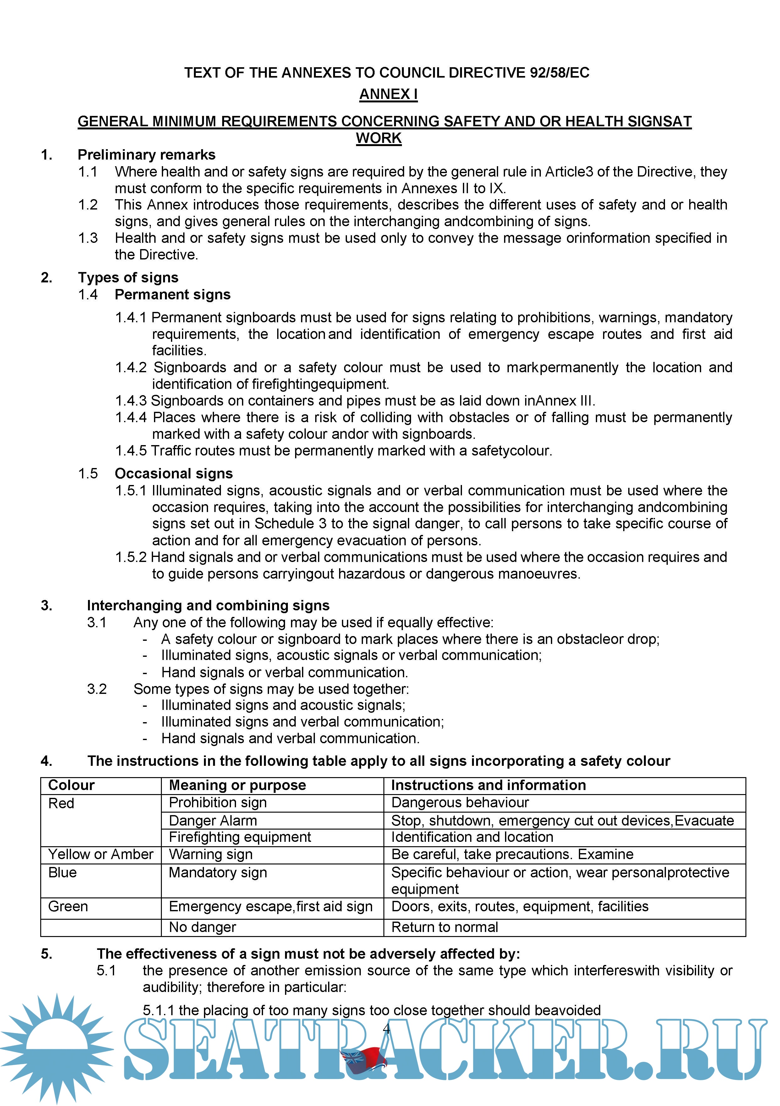 92/58 EEC, on the minimum requirements for the provision of safety and health signs at