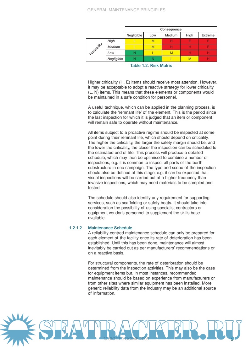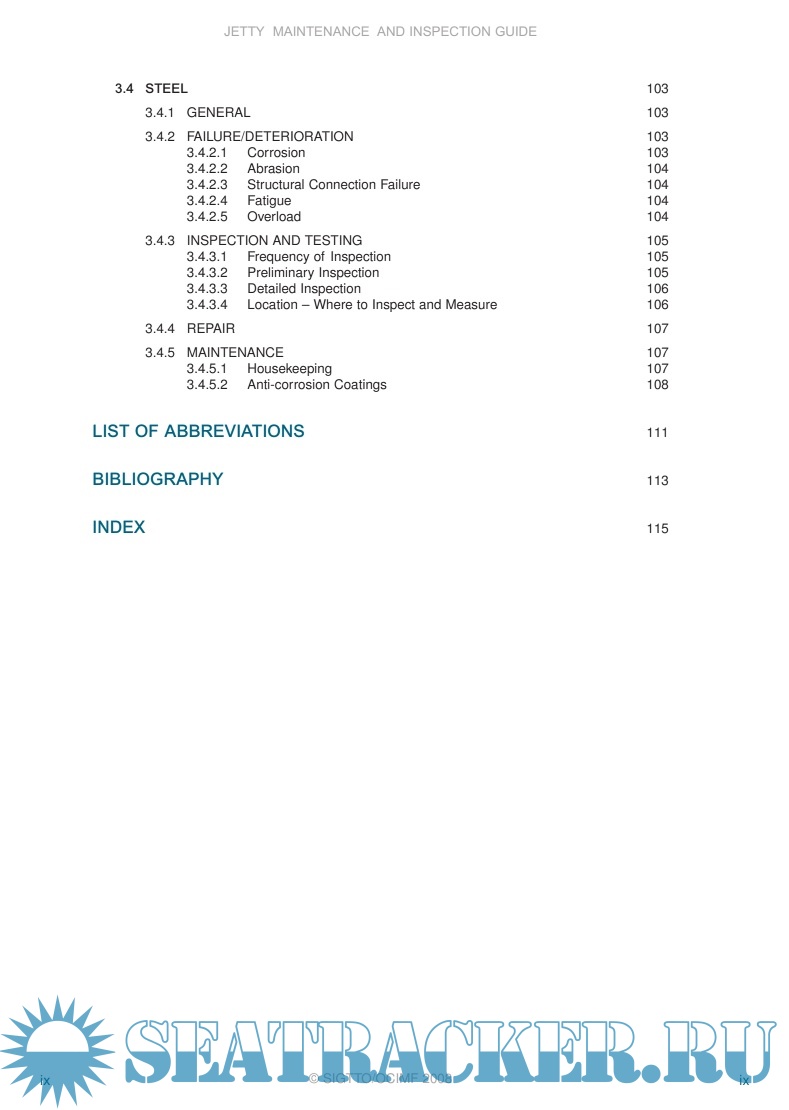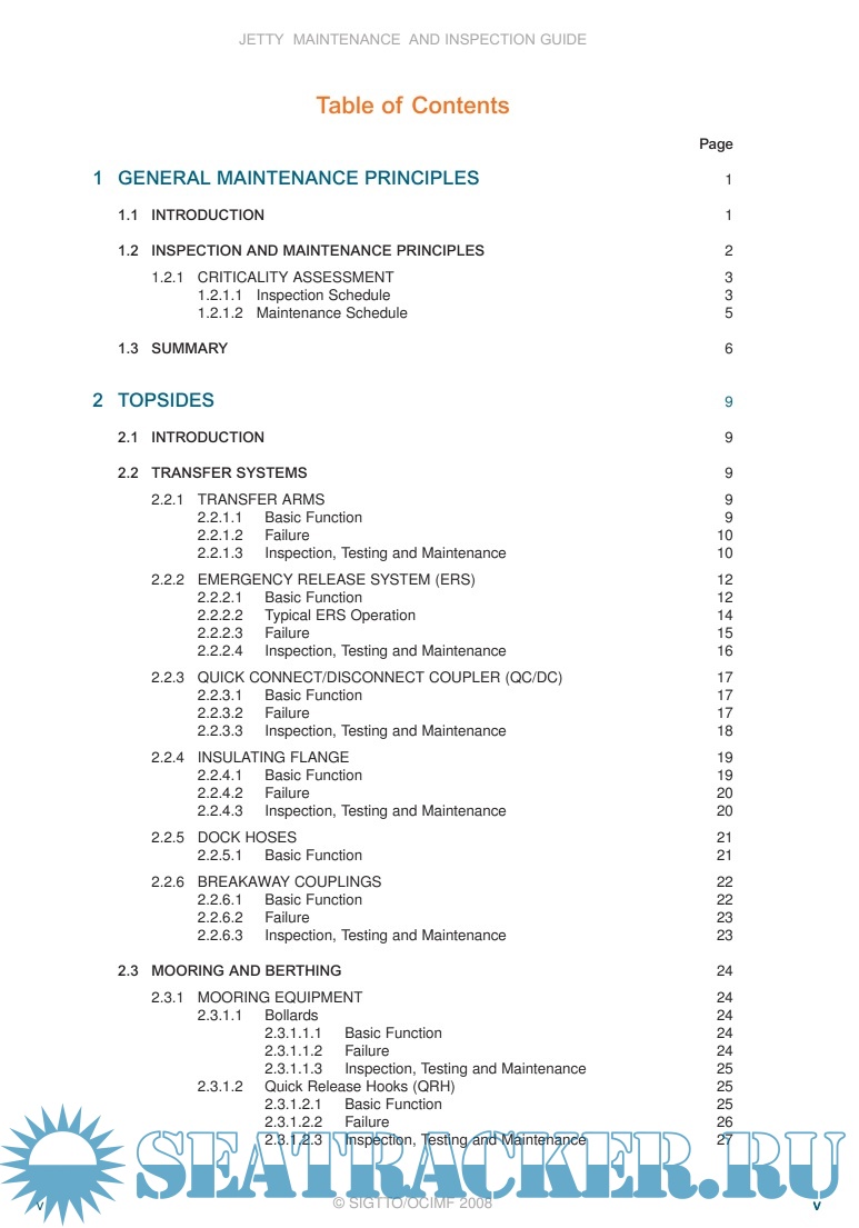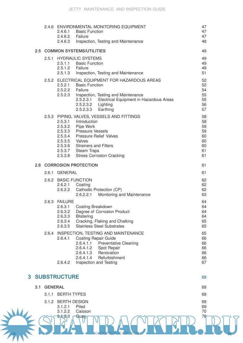 This guide provides information on the basic function, failure, inspection, maintenance and repair of all the key equipment items and systems. It is not intended to provide guidance on safety management procedures or to replace the manufacturers’ instruction manuals. However, it is designed to provide a description of a typical jetty and the likely faults that may occur if maintenance work is not carried out regularly.