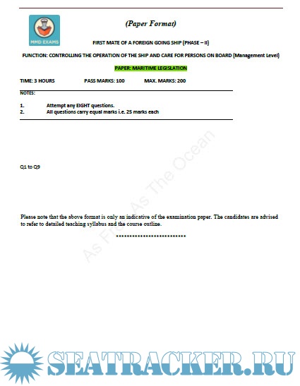 Question paper set for Mercantile Marine Department (MMD), India Exams for Phase II - Chief Mate (F.G.).