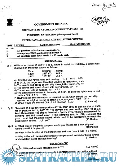 Question Paper Set for Phase II (Chief Mate F.G.) Mercantile Marine Department (MMD), India…