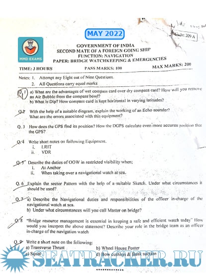 2nd Mate (F.G.) question paper sets for Mercantile Marine Department (MMD), India Exams.
