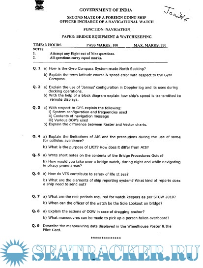 Question Paper Set for Second Mate (F.G.) Mercantile Marine Department (MMD), India Examinations -…