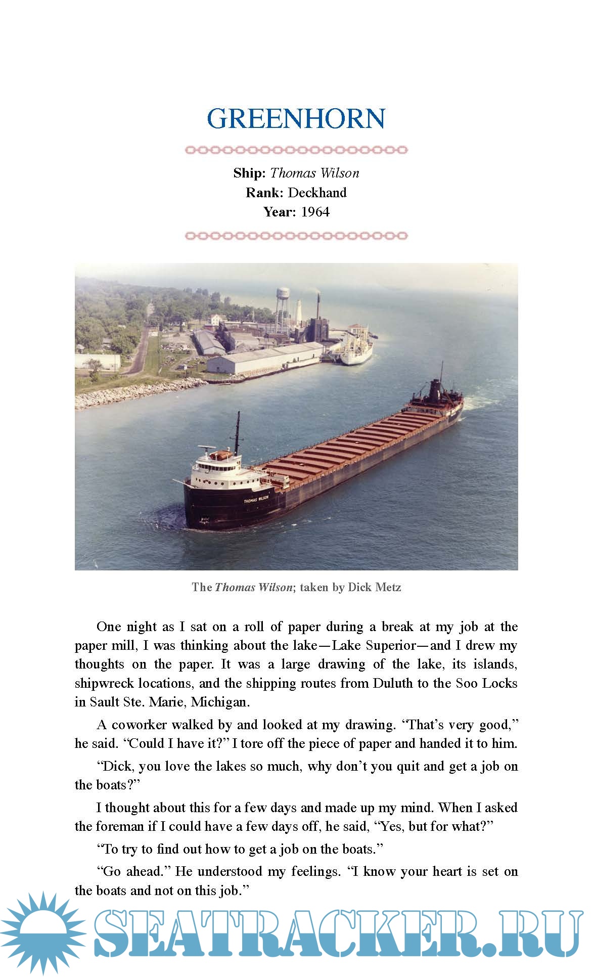 Description: Richard Metz was a Great Lakes captain for 20 years. He experienced wild weather, close calls, near misses, and events that can only be described as “unimaginable.” He has incredible sea stories to tell, and now they are yours to enjoy. Take an entertaining look at life aboard a variety of Great Lakes ships. Read 26 compelling tales of a Great Lakes crewmate and captain, including stories about the Gales of November, the night of the Edmund Fitzgerald’s sinking, and more. Plus, you’ll be fascinated by the details and full-color photographs of the ships themselves. If you’re a history buff, a Great Lakes enthusiast, a ship watcher, or a fan of a good yarn, Sea Stories is for you!