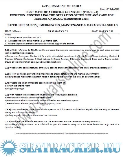 Description: Paper: Ship Safety, Emergencies, Maintenance and Managerial Skills