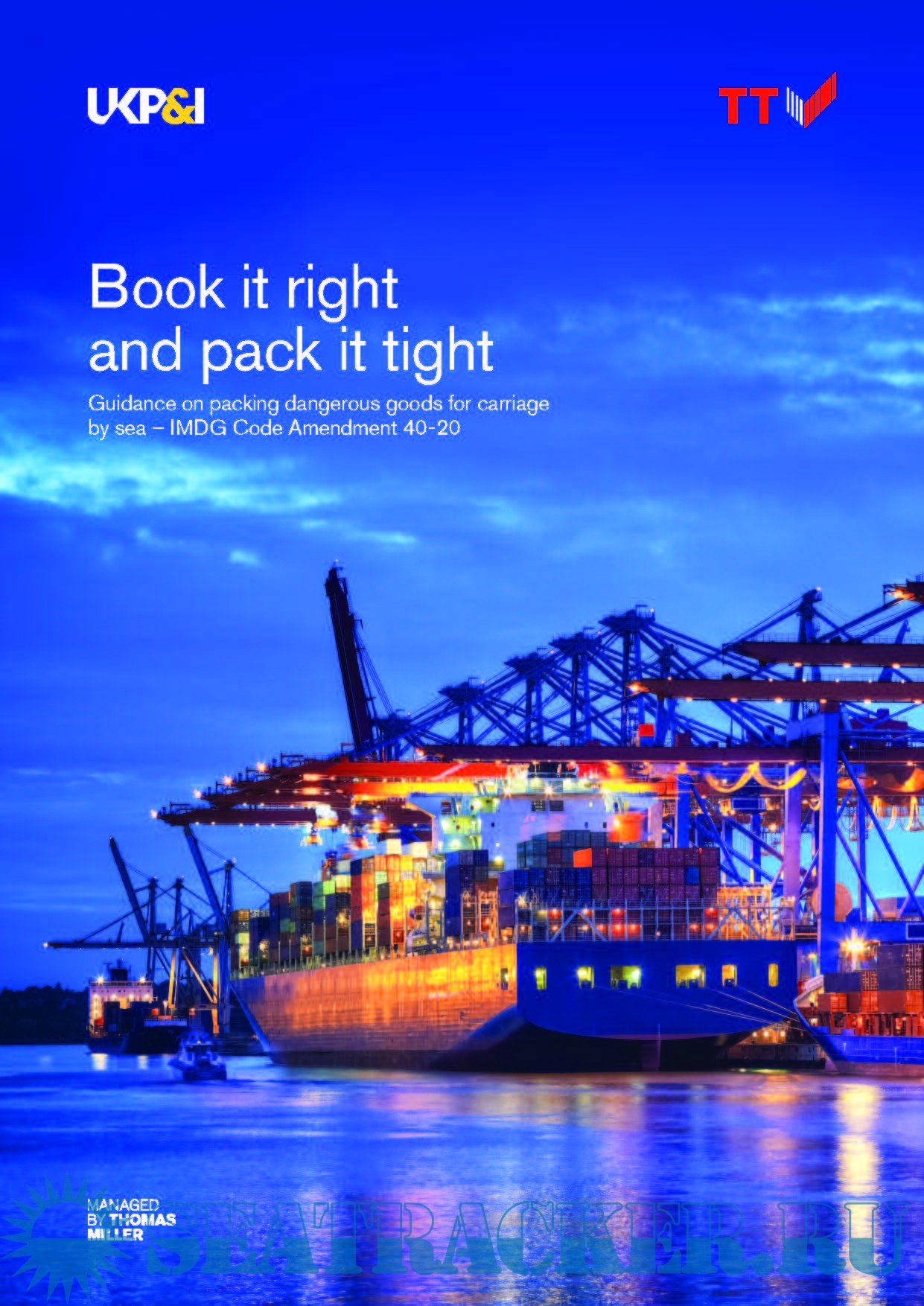Year: 2022 Language: english Author: Thomas Miller Genre: Guide Publisher: UK P&I Club Edition: June, 2022 ISBN: 9780956270474 Format: PDF Quality: eBook Pages count: 108 Description: A Carefully to Carry publication. “Book it right and pack it tight” publication, which reflects the mandatory application of the latest amendment to the International Maritime Dangerous Goods (IMDG) Code from 1June 2022. In doing so, I applaud the continuing efforts of the UK P&I Club and TT Club to provide useful and practical guides to these vital rules for the carriage of packaged dangerous goods by sea. This guidance reflects Amendment 40-20 of the IMDG Code. It follows the full range of processes of a dangerous goods consignment being carried by sea. Dangerous Goods problems at sea start on land, so I urge all involved in the intermodal supply chain – shippers, forwarders, logistics operators, shipping lines – to distribute this publication widely to their own staff, and their counterparties who prepare consignments for mariners to carry.