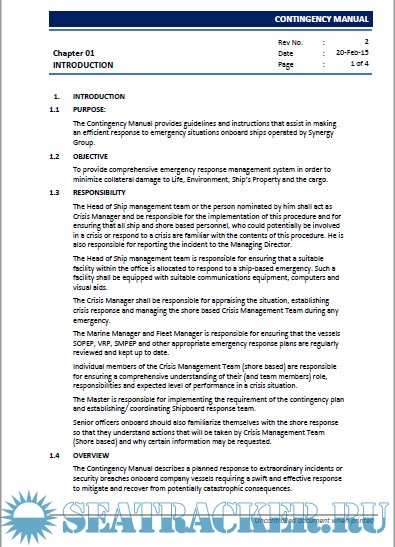 Description: The Contingency Manual provides guidelines and instructions that assist in making an efficient response to emergency situations onboard ships.