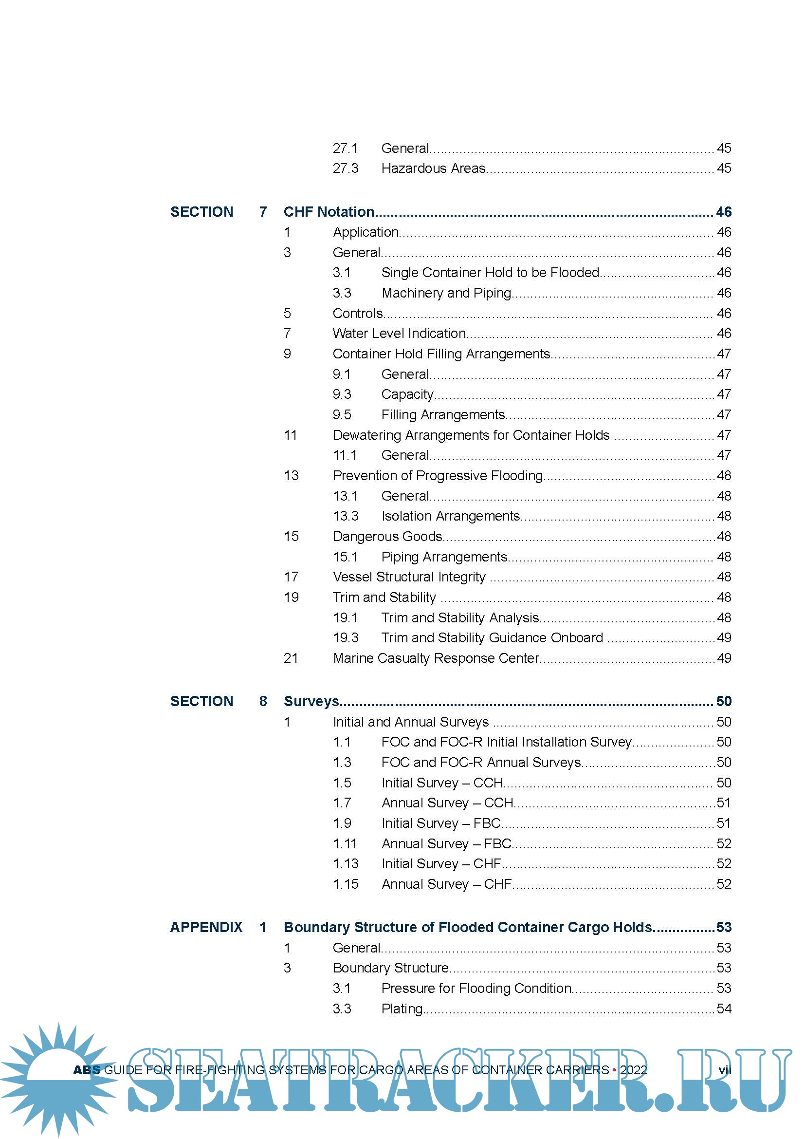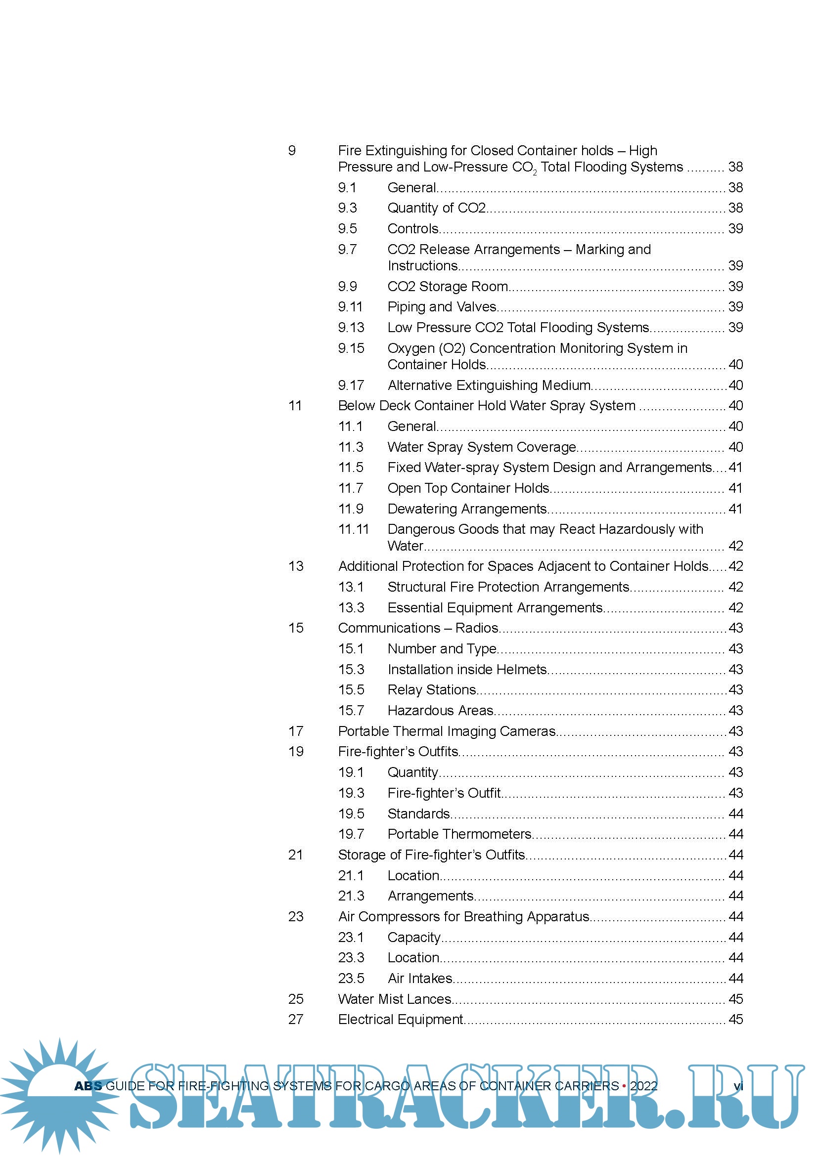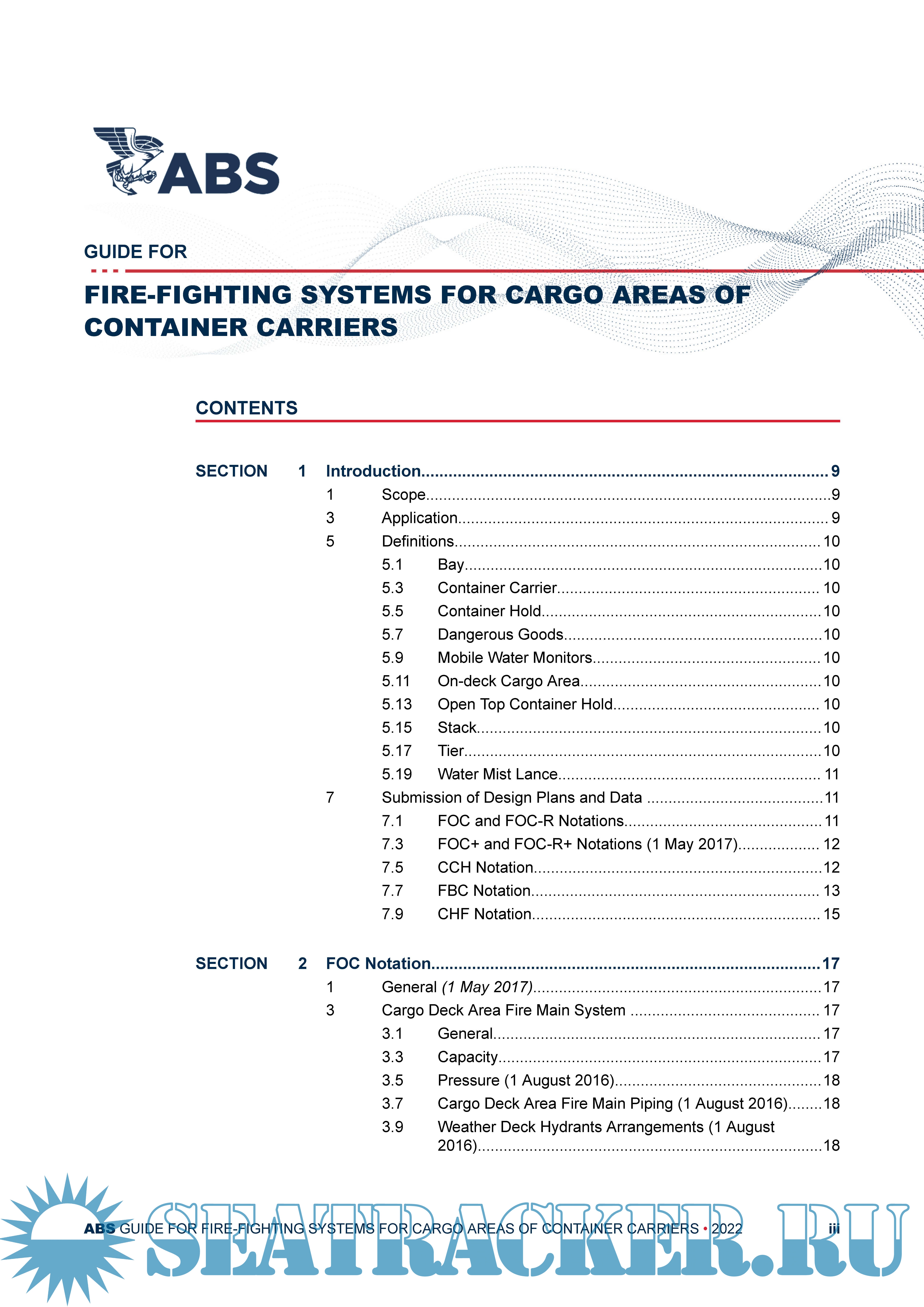 Description: This Guide provides requirements for enhancement of the fire-fighting and fire protection capabilities for cargo areas of Container Carriers beyond that required by SOLAS.