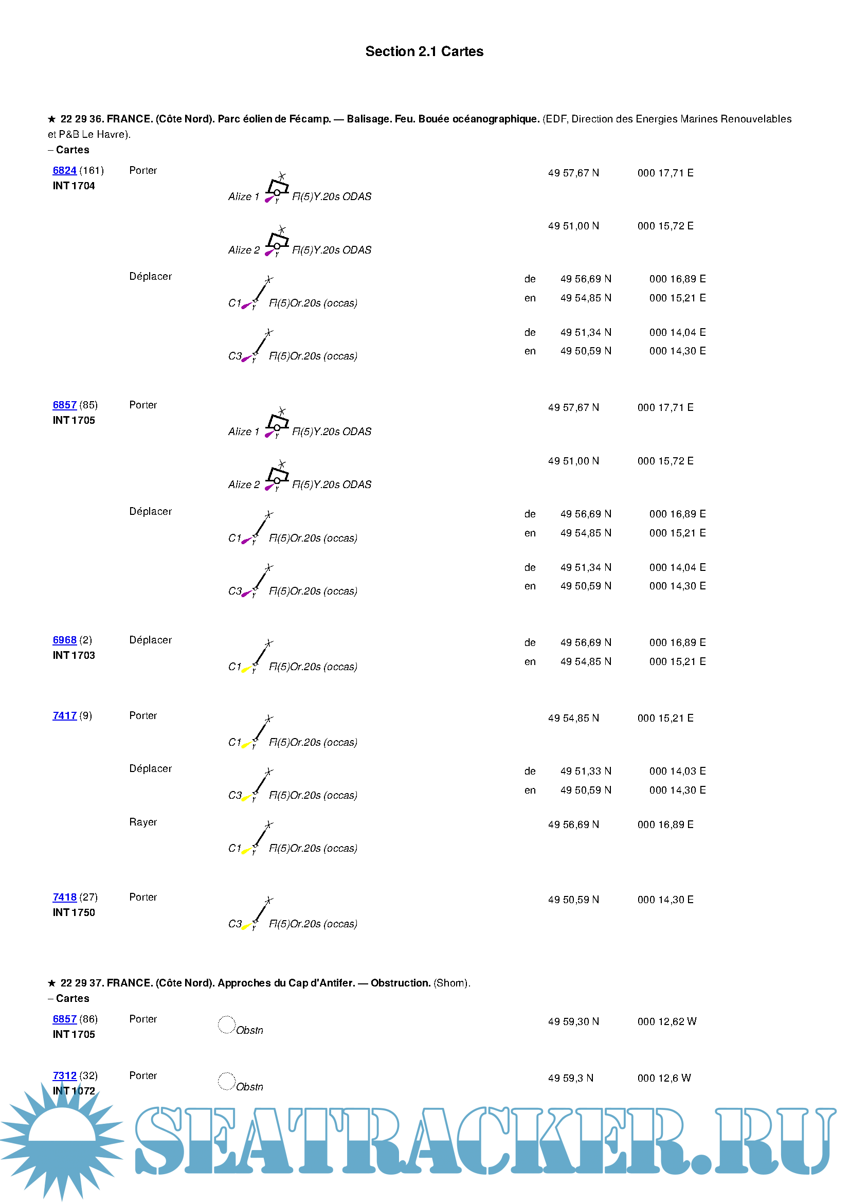 Description: SHOM Notices to Mariners with correct RNC (BSB/kap).