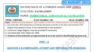 Question Paper Set for Terrestrial and Coastal Navigation (August 2022) for Second Mate (F.G.) Mercantile Marine Department (MMD), India Examinations