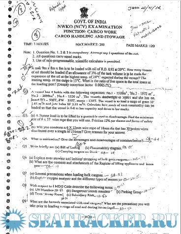 NWKO (NCV) question paper sets for Mercantile Marine Department (MMD), India Exams.