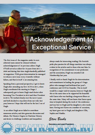 Description: The aims of this magazine are simple. We want to produce a magazine that is written for and read by New Zealand pilots, that looks forward, back, inward, and outward and discusses current issues around piloting practice worldwide. We also want it to be of interest to our partners – other pilot’s associations, port companies, councils, regulators, and equipment manufacturers.