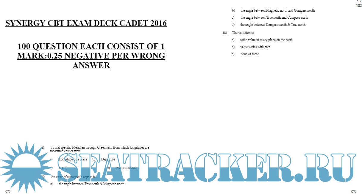 Synergy Exam Previous Year Questions for Deck Cadets