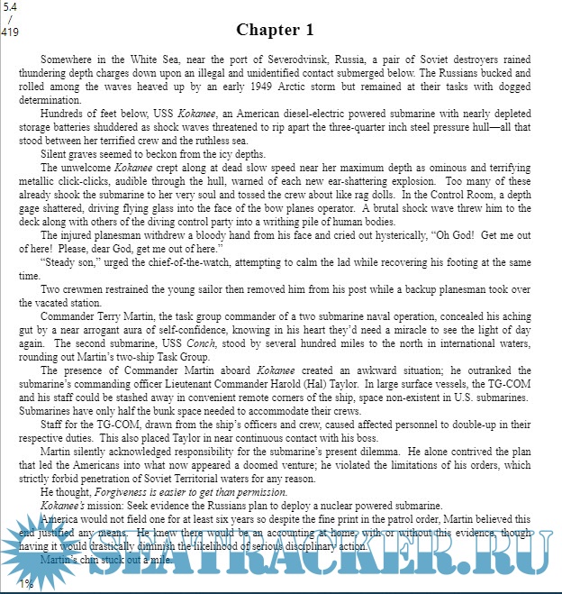 Year: 2009 Language: english Author: D.M. Ulmer Genre: History Publisher: Patriot Media, Incorporated Edition: Kindle | 1st ISBN: 978-0-9791642-7-9 Format: EPUB Quality: eBook Pages count: 419 Description: January 1949, early in the undeclared Cold War, the U.S. diesel-electric submarine Kokanee has illegally penetrated deep into Soviet Union waters of the White Sea and is detected by a pair of Russian destroyers. Depth charges fall on Kokanee and seem on the verge of tearing the besieged ship apart. A vindictive Russian captain is determined to eradicate the Americans. Two U.S. intelligence agents have been put ashore, their mission: determine whether the Soviets are developing a nuclear powered submarine. Commander Terry Martin violated Kokanee's patrol orders and risks everything, including his career, against the long odds of acquiring information essential to the long term security of the United States. Additional info: About the Author: Veteran author D.M. Ulmer is a 1954 graduate of the U.S. Naval Academy and served a thirty-two year career in the submarine force. He has authored four other novels Silent Battleground, Count the Ways, Missing Person and The Roche Harbor Caper. Ulmer volunteers at the Seattle Museum of Flight and Overlake Hospital Medical Center. He lives in Redmond, WA with his wife Carol.