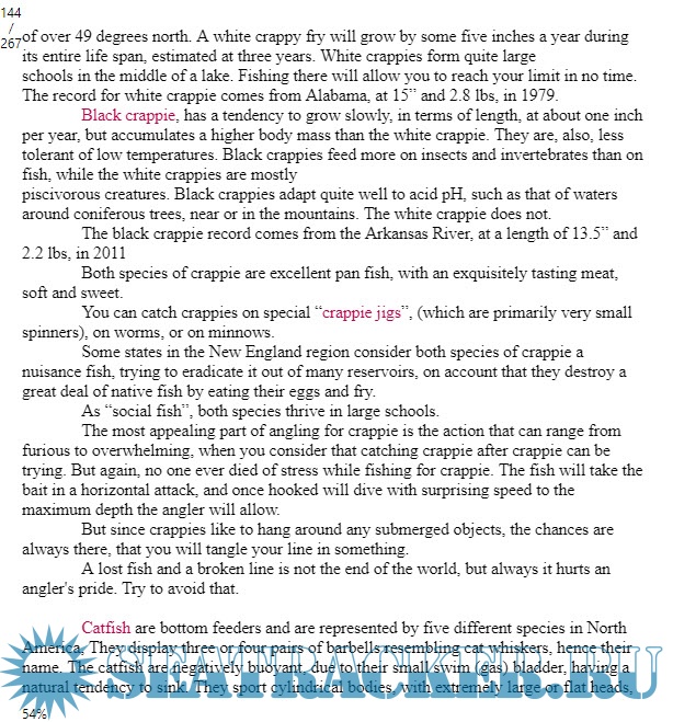 Description: "Freshwater Fishing" is a practical guide for fishing in the continental USA. It will answer the most basic questions a fisherman, novice or "old Hand", may have, such as "Where to fish", "When to fish", and "How to fish". It analyzes most of the aspects related to fishing methods, equipment and bait. this nook devotes ample space to fish behavior, describing physiologically-driven fish feeding times, and spawning habits, giving an angler data hard to find in specialized magazines. The author's focus is fixed on electronic gadgets for fishing, regulatory aspects for all the contiguous states, and on fish diseases and parasites. The final chapter is dedicated to fishing competitions.This author did conceive this writing as a truly "tackle-box-book". Written in an easy to understand, conversational style, this book is suited for old and young alike, as an expression of author's love for God's creation, trying to convince his readers to respect and protect the environment, for the use of the future generations of anglers, our children and grandchildren. Above all, this book is a practical step in educating the reader along the best fishing practices.