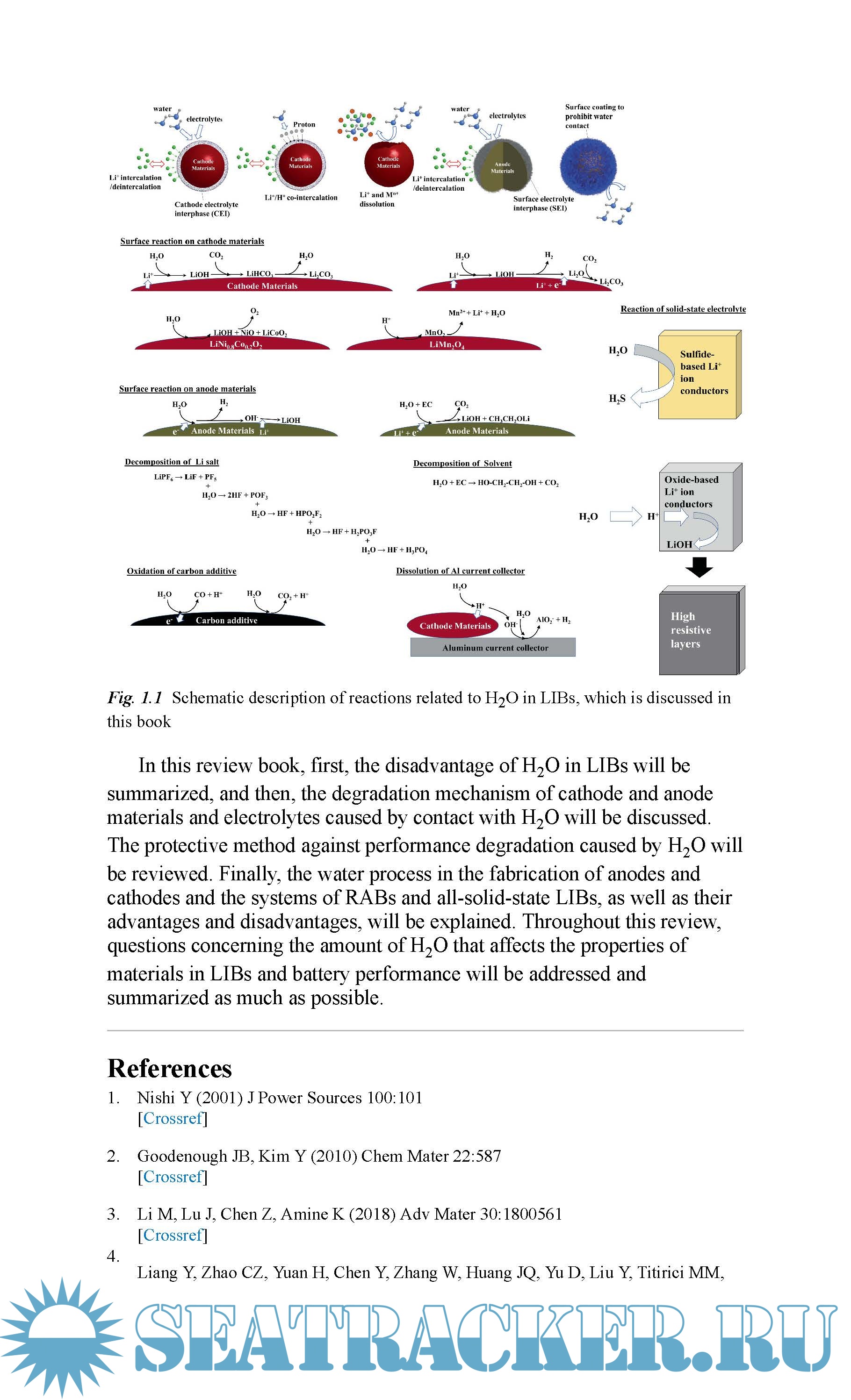 Year: 2022 Language: english Author: Futoshi Matsumoto, Takao Gunji Genre: Research papers Publisher: Springer Edition: 1st ISBN: 9789811687860 Format: EPUB Quality: eBook Pages count: 76 Description: This book reviews the impact of water content in lithium-ion batteries (LIBs) as well as the reactivity of anodes, cathodes and electrolytes with water and processes that provide water-resistance to materials in LIBs. Water in LIBs which were constructed with anode, cathode and organic electrolyte containing lithium salts can degrade the cell performance and seriously damage the materials present. However, because a small amount of water in cells contributes to the formation of the solid electrolyte interphase, complete removal of water from cells lowers the battery performance and increases costs due to removal of water from the battery materials. This book presents the optimal concentration of water for each battery material along with appropriate removal methods and water-scavengers which were developed recently to establish both high performance and lower costs. Moreover this book describes the development of anodes and cathodes prepared by aqueous process and aqueous LIBs in which aqueous electrolytes containing lithium salts are used as an electrolyte. - Reviews practical aspects of lithium-ion battery research - In-depth discussion on water content in lithium-ion batteries - Deals with attractive topic for both academic and industry