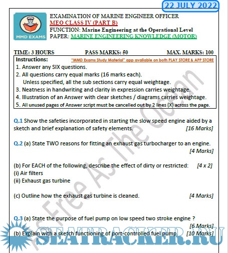Question Paper (updated March 2023) for M.E.O. Class IV Examinations, India - D.G. Shipping, India…