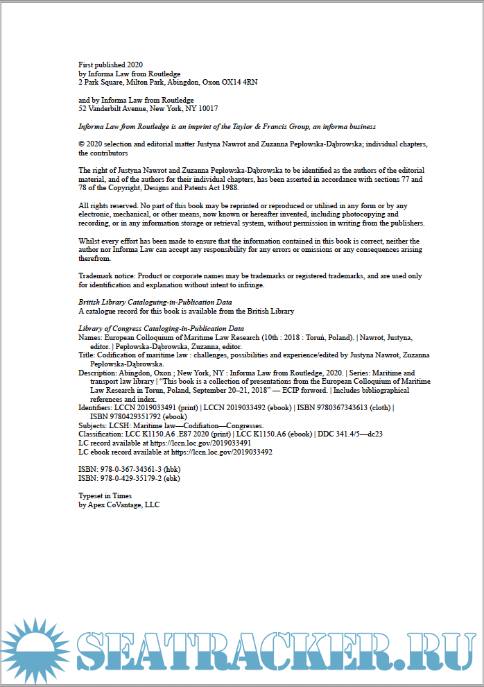 Codification of maritime law: challenges, possibilities and experience - Edited by Justyna Nawrot,…