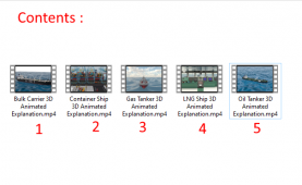 Description: These videos are 3D animated model of different types of ships including: Container ship, Bulk Carrier, Oil Tanker ship, LPG(Liquified Petroleum Gas) or LEG(Liquified Ethylene Gas) and Liquified Natural Gas (LNG) - Membrane Type.
