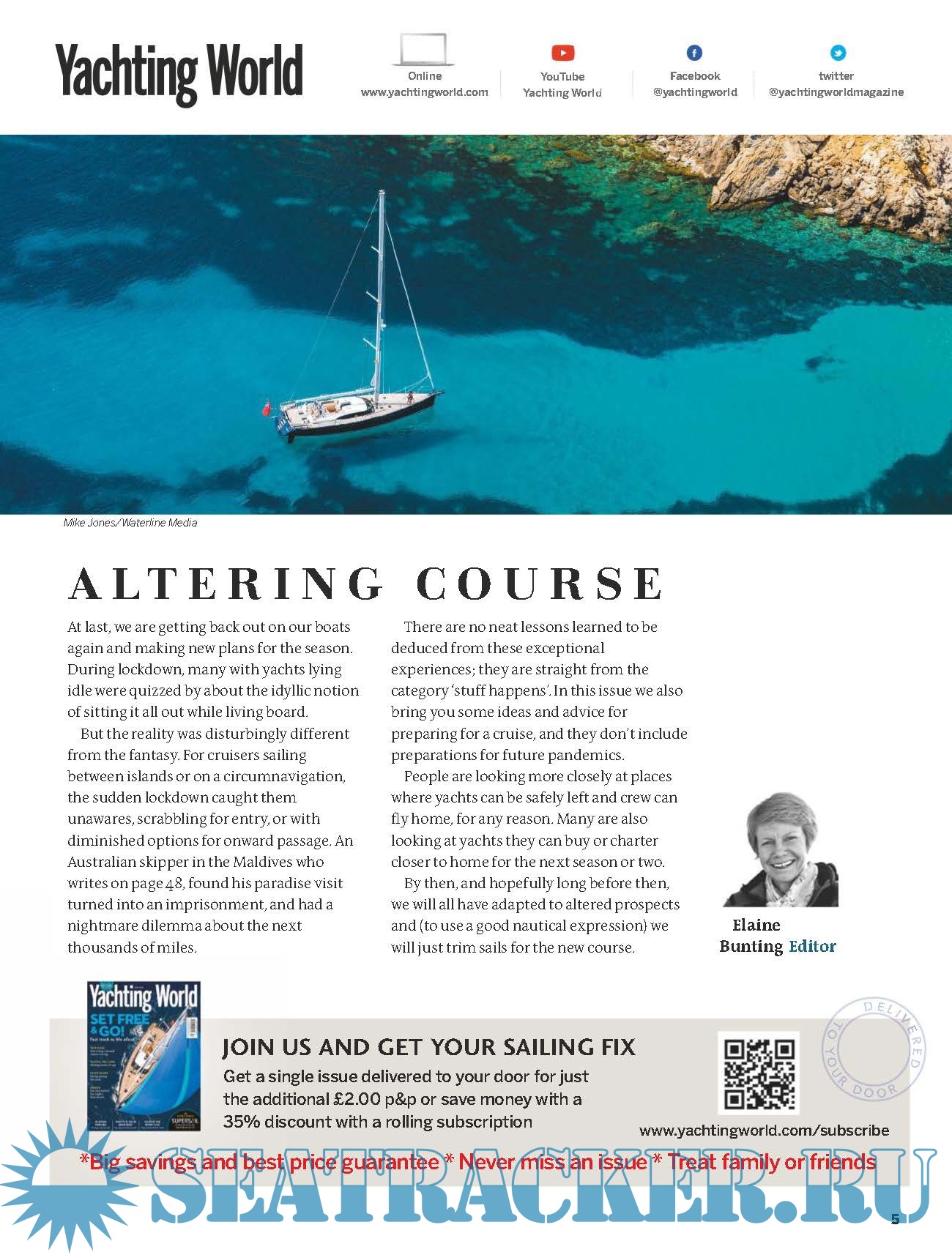 Year: 2020 Language: english Author: Elaine Bunting Editor Genre: Periodical (magazine) Publisher: Future Publishing Limited Quay House Edition: July 2020 Format: PDF Quality: Photo of pages Pages count: 134 Description: Yachting World has had its finger on the pulse of sailing since 1894 (though some of us joined a little more recently). We reckon we are the most enthusiastic sailing fans in the world: we love boats of all kinds, modern and classic, we like racing and cruising, are fascinated by innovation yet revere tradition, and nothing that floats is too big or too small for our tastes.