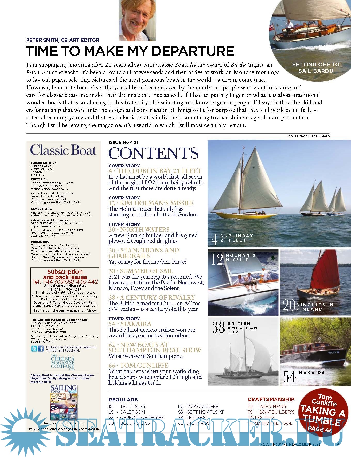 Description: Classic Boat is the magazine that showcases the world’s most beautiful boats. Packed with stunning images,have the inside stories of the great classic yachts and motorboats afloat today, as well as fascinating tales from yesteryear andthe latest from the wooden boat building scene around the world.