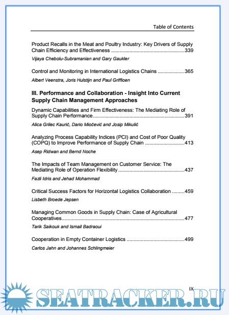 Year: 2014 Language: english Author: Thorsten Blecker Wolfgang Kersten Christian Ring Genre: Textbook Publisher: epubli GmbH Berlin Edition: 1st 2014 Format: PDF Quality: eBook Pages count: 577 Description: Preface Innovation is increasingly considered as an enabler of business competitive advantage. More and more organizations focus on satisfying their consumer’s demand of innovative and qualitative products and services by applying both technology-supported and non technology-supported innovative methods in their supply chain practices. Due to its very characteristic i.e. novelty, innovation is double-edged sword; capturing value from innovative methods in supply chain practices has been one of the important topics among practitioners as well as researchers of the field. This book contains manuscripts that make excellent contributions to the mentioned fields of research by addressing topics such as innovative and technology-based solutions, supply chain security management, as well as current cooperation and performance practices in supply chain management. We would like to thank the international group of authors for making this volume possible. Their outstanding work significantly contributes to supply chain management research. This book would not exist without good organization and preparation; we would like to thank, Sara Kheiravar, Tabea Tressin, Matthias Ehni and Niels Hackius for their efforts to prepare, structure, and finalize this book. Hamburg, August 2014 Prof. Dr. Thorsten Blecker Prof. Dr. Dr. h. c. Wolfgang Kersten Prof. Dr. Christian Ringle Additional info: This book can be downloaded at HICL (hicl.org) or at the TUBdok – Publication Server of the Hamburg University of Technology (doku.b.tu-harburg.de) – ISBN: 978-3-7375-0341-9